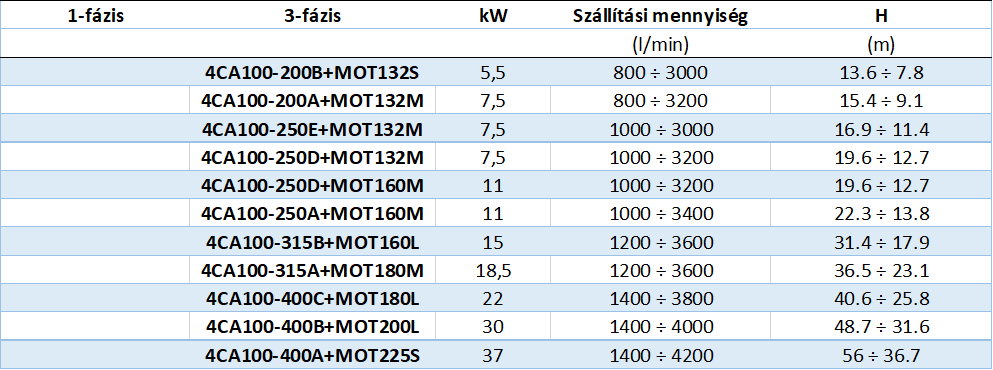 Az összes 4CA modellhez rendelhető IE3 hatékonysági osztályú elektromotor.