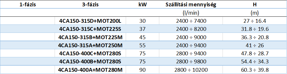 Az összes 4CA modellhez rendelhető IE3 hatékonysági osztályú elektromotor.
