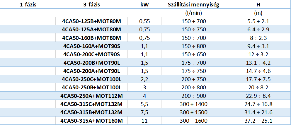 Az összes 4CA modellhez rendelhető IE3 hatékonysági osztályú elektromotor.