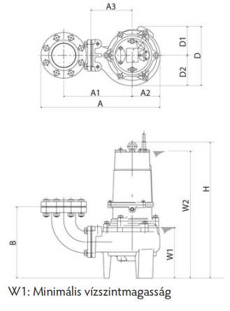 Modell | A | A1 | A2 | A3 | B | D | D1 | D2 | H | W1 | W2 |