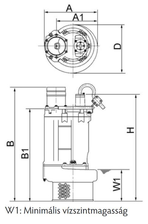 Felső kifolyású: a szivattyúzott közeg a duplafalú köpenyen halad keresztül, ezáltal a villanymotort körülvéve hűti azt.